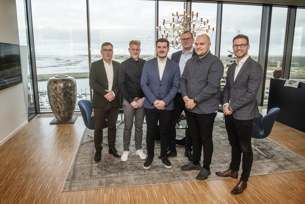 I 2021 er Mads, WoodUpp (nr 3 fra Venstre) farens (Per Vesterby, TV) største kunde, og WoodUpp står nå for 95% av PVH’s produksjonskapasitet. Per og Mads ble enige om at det var på tide med et generasjonsskifte.
