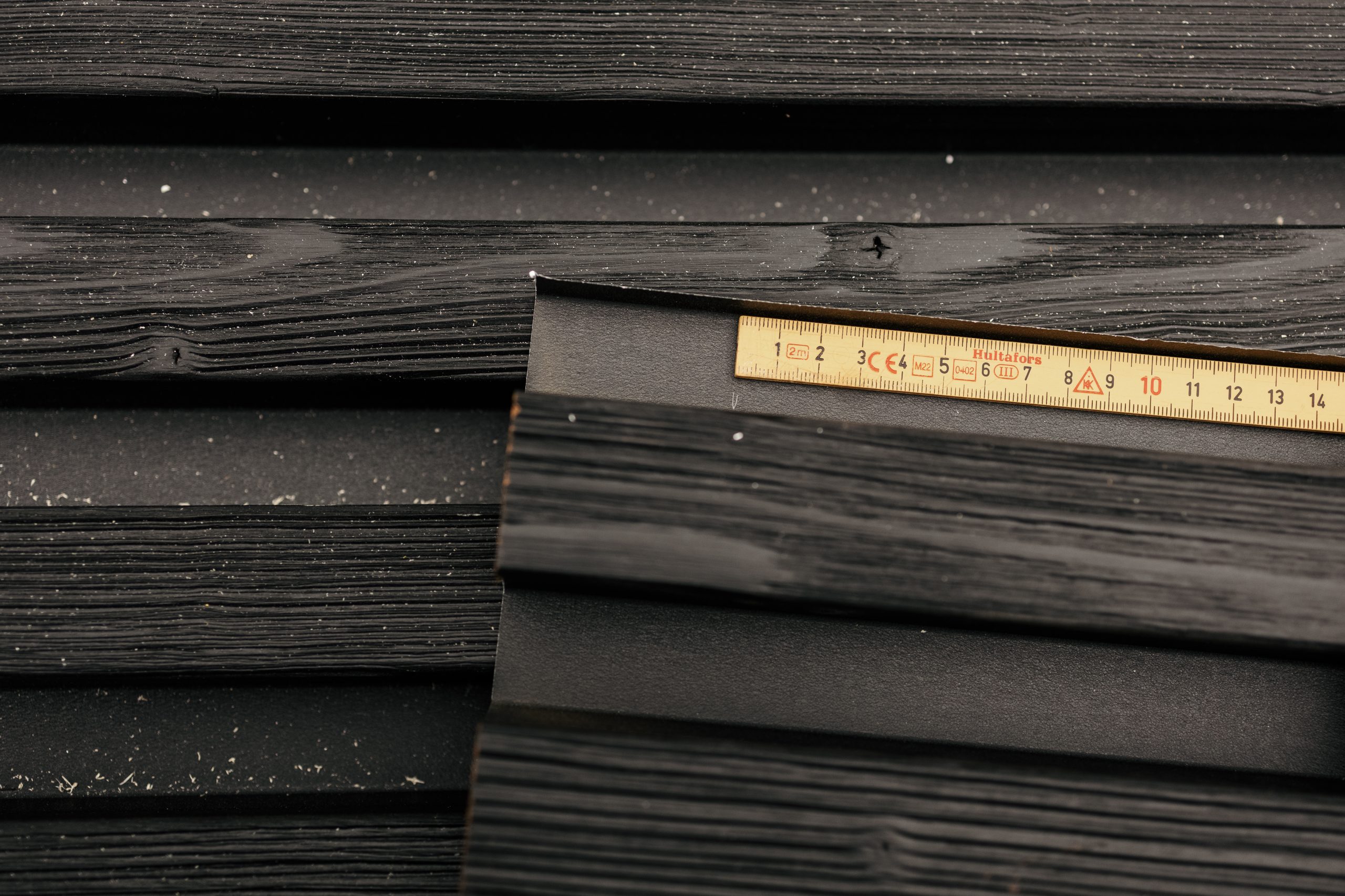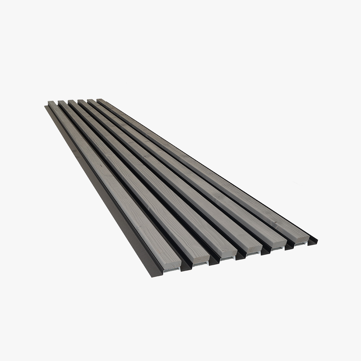 Aluwood beholder varmen og årene av tre — uten vridning, sprekker og sagging. Termisk behandlet gran binder seg til pulverlakkert aluminium. Tre gir utseendet. Aluminium holder formen.