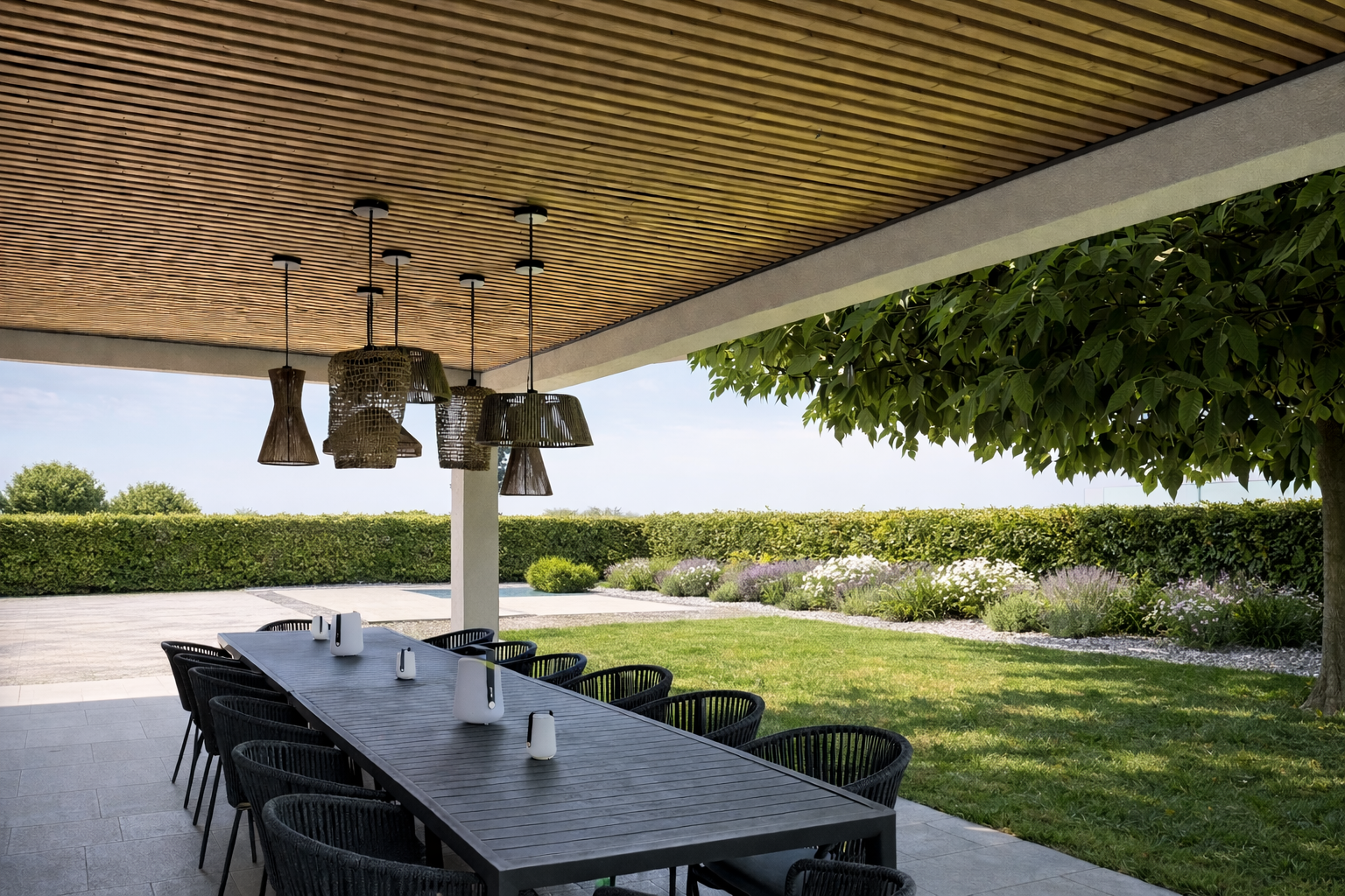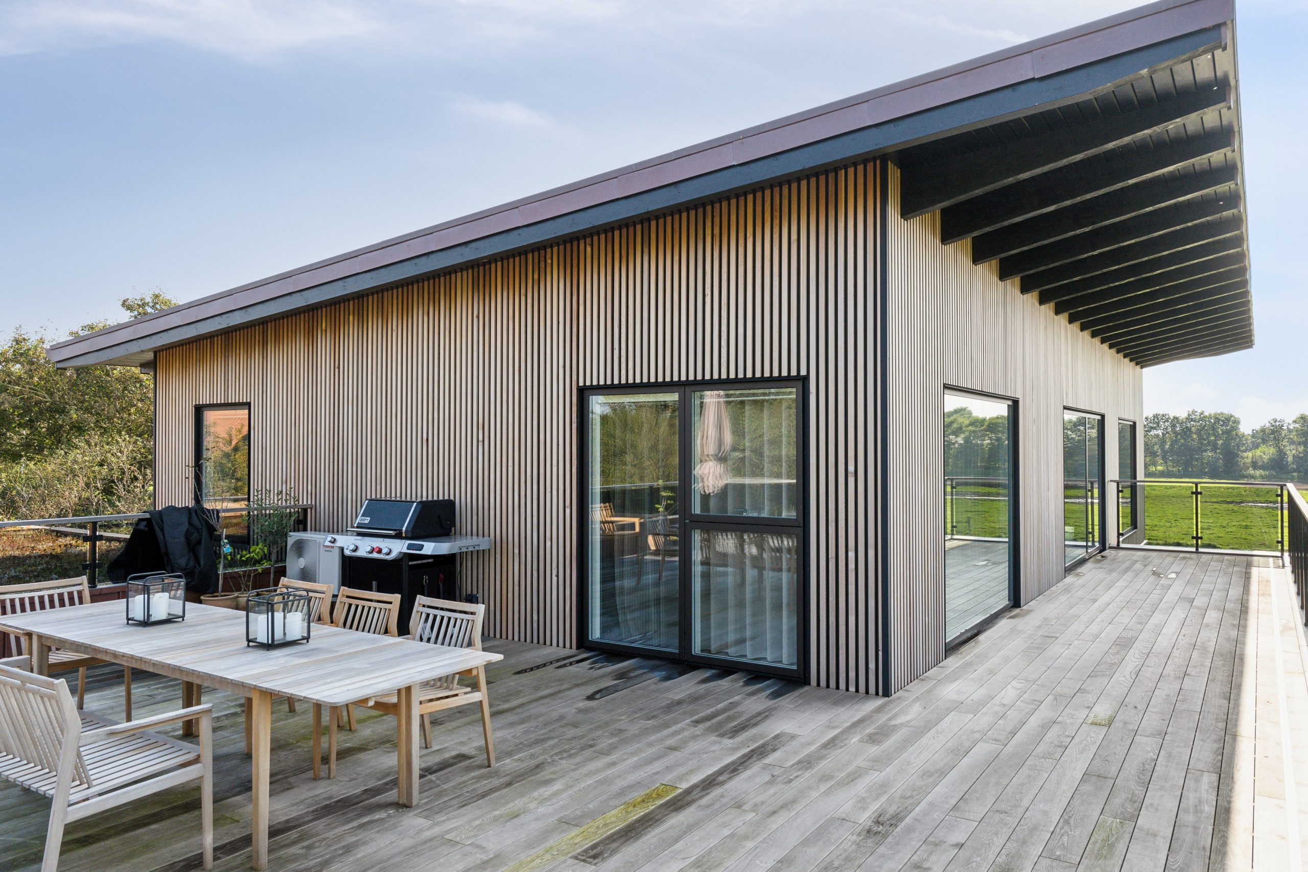 Laget av termisk behandlet tre og belagt aluminium, gjør panelene våre det mulig å heve utendørsområdene i en tidløs skandinavisk design.