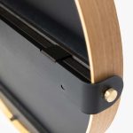 WoodUpp-speilet er laget av Ø: 60 cm speilglass av høy kvalitet med en slitesterk ramme i finérbelagt kryssfiner i enten naturlig eik eller svart. Total bredde, inkludert sideskruene, er 62,8 cm.