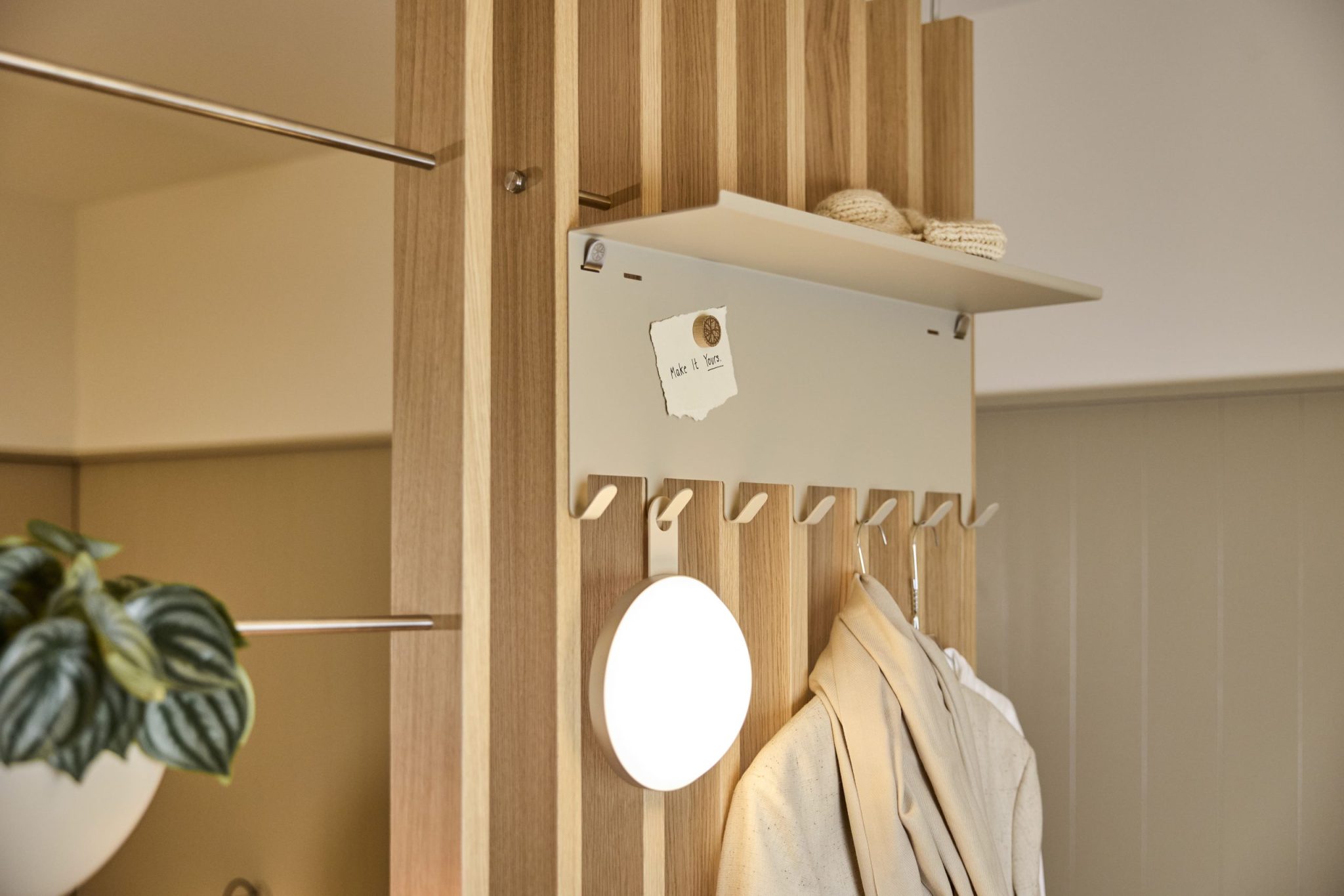 Knaggrekken forvandler BM1 til en nyttig hverdagsområde. Den holder ting unna stoler og gulv og gjør det enkelt å henge opp ting så snart du kommer inn.